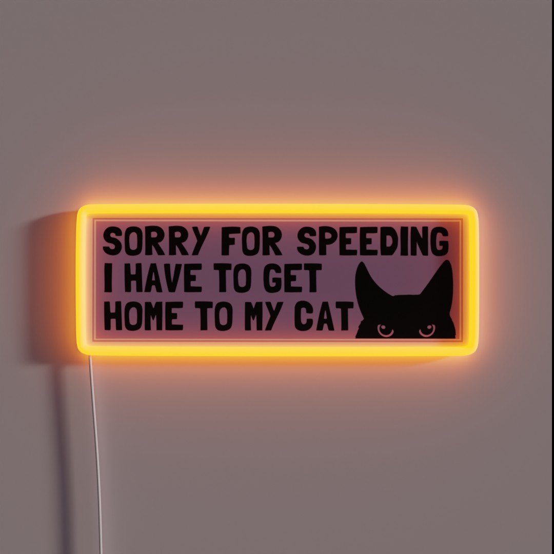 Customizable ‘Sorry For Speeding I Have To Get Home To My Cat’ RGB Neon Sign for Car Enthusiasts and Feline Lovers – Perfect Gift or Unique Personalized Item