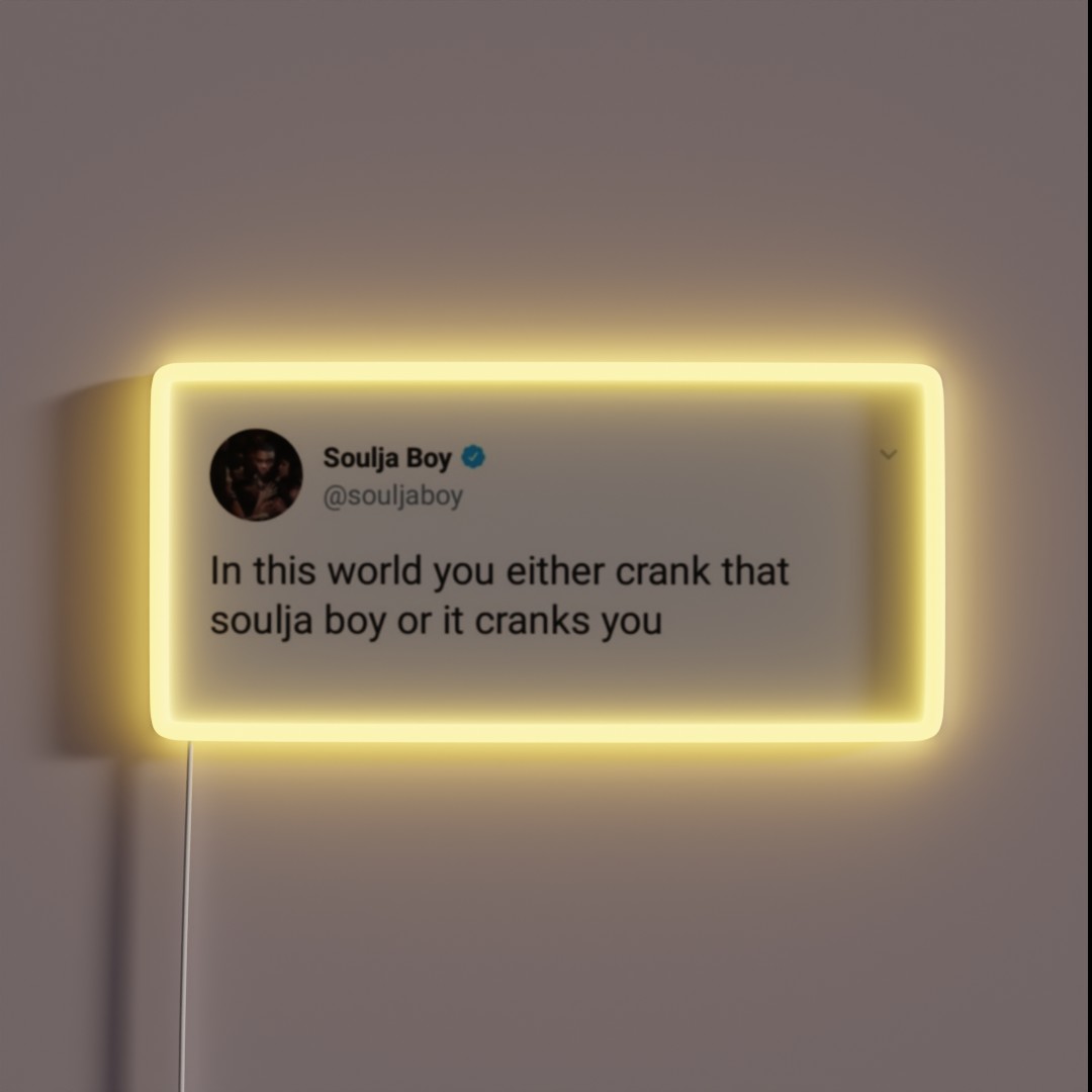 Add a touch of swag to your space with our Soulja Boy tweet-inspired RGB neon sign, featuring vibrant colors and edgy vibes that’ll make you scream ‘Crank That’!