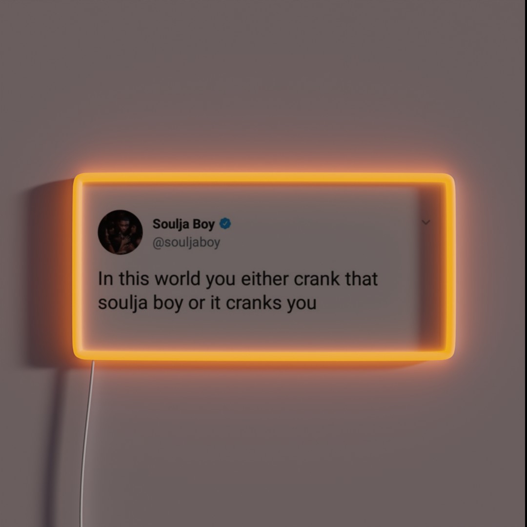 Introducing the Soulja Boy Tweet RGB Neon Sign, a vibrant and customizable lighting solution that adds a touch of personality to any room. This innovative sign features a bold, iconic phrase associated with the famous rapper, crafted using cutting-edge LED technology.