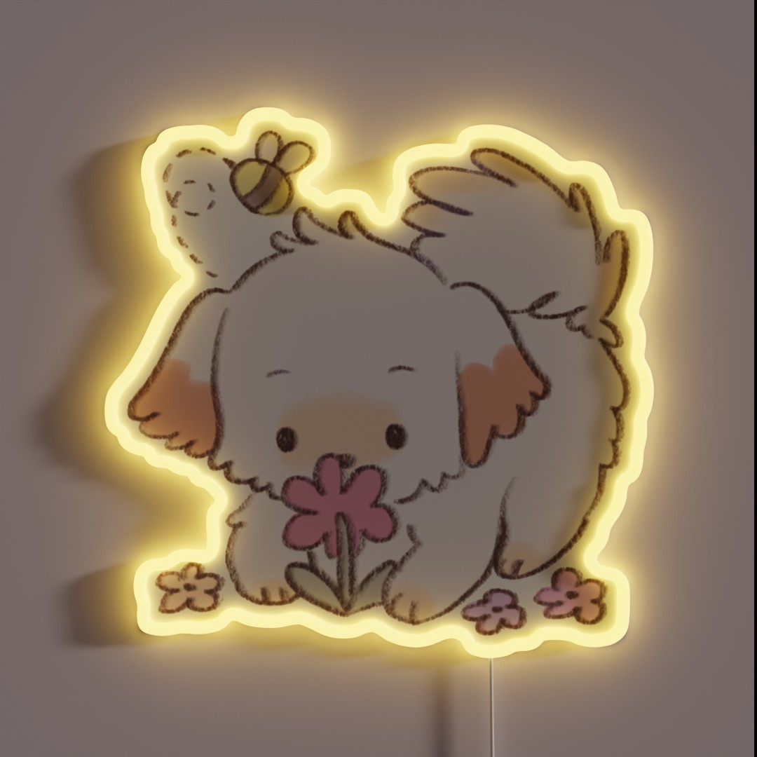 Brighten up your space with this adorable Spring-themed puppy RGB neon sign, featuring a pastel-colored pup amidst blooming flowers and vibrant colors to bring a touch of whimsy and fun to any room.
