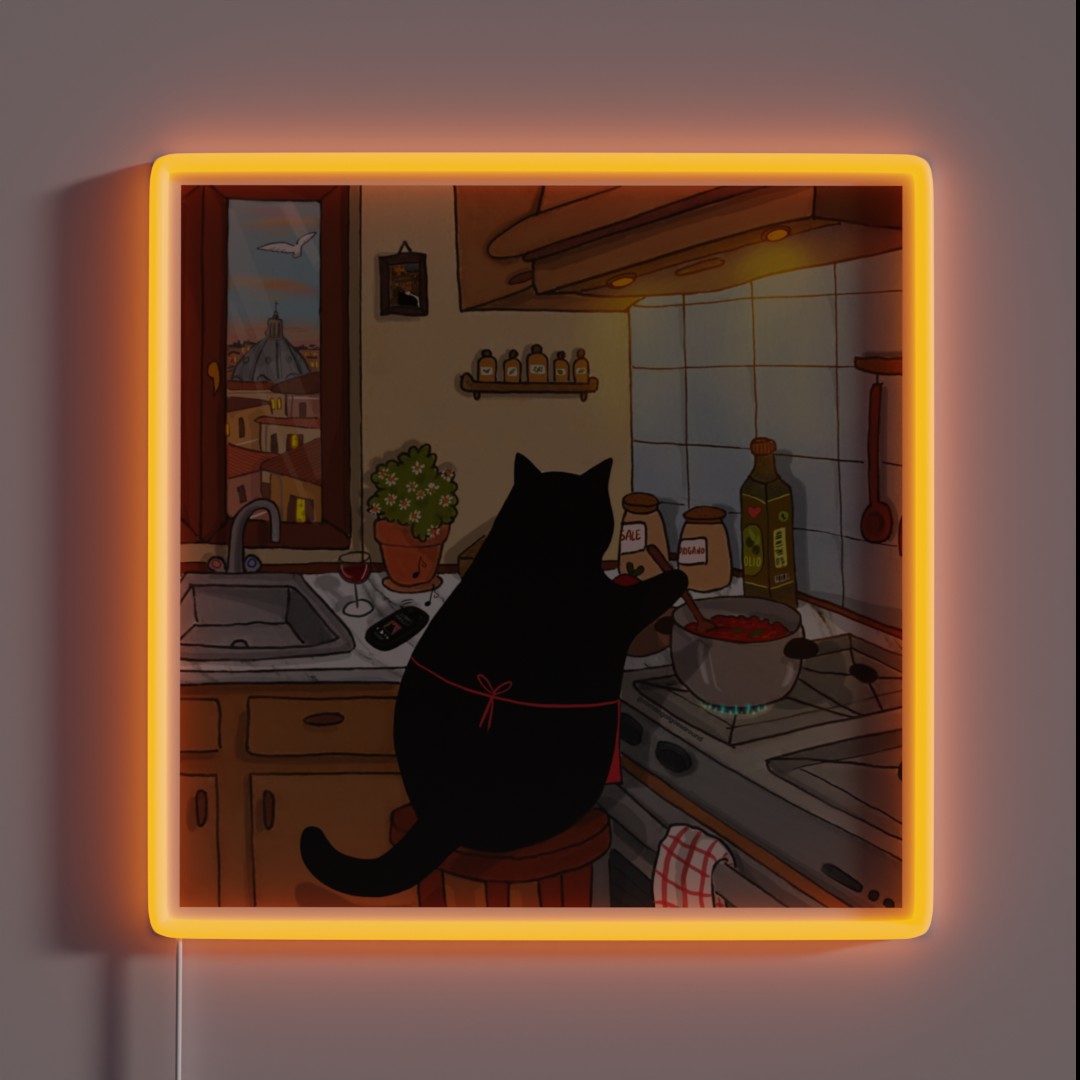 Add a pop of color and Italian flair to your kitchen with this unique RGB neon sign featuring a classic ‘Stanis Making Tomato Sauce’ design, perfect for foodies and home cooks.