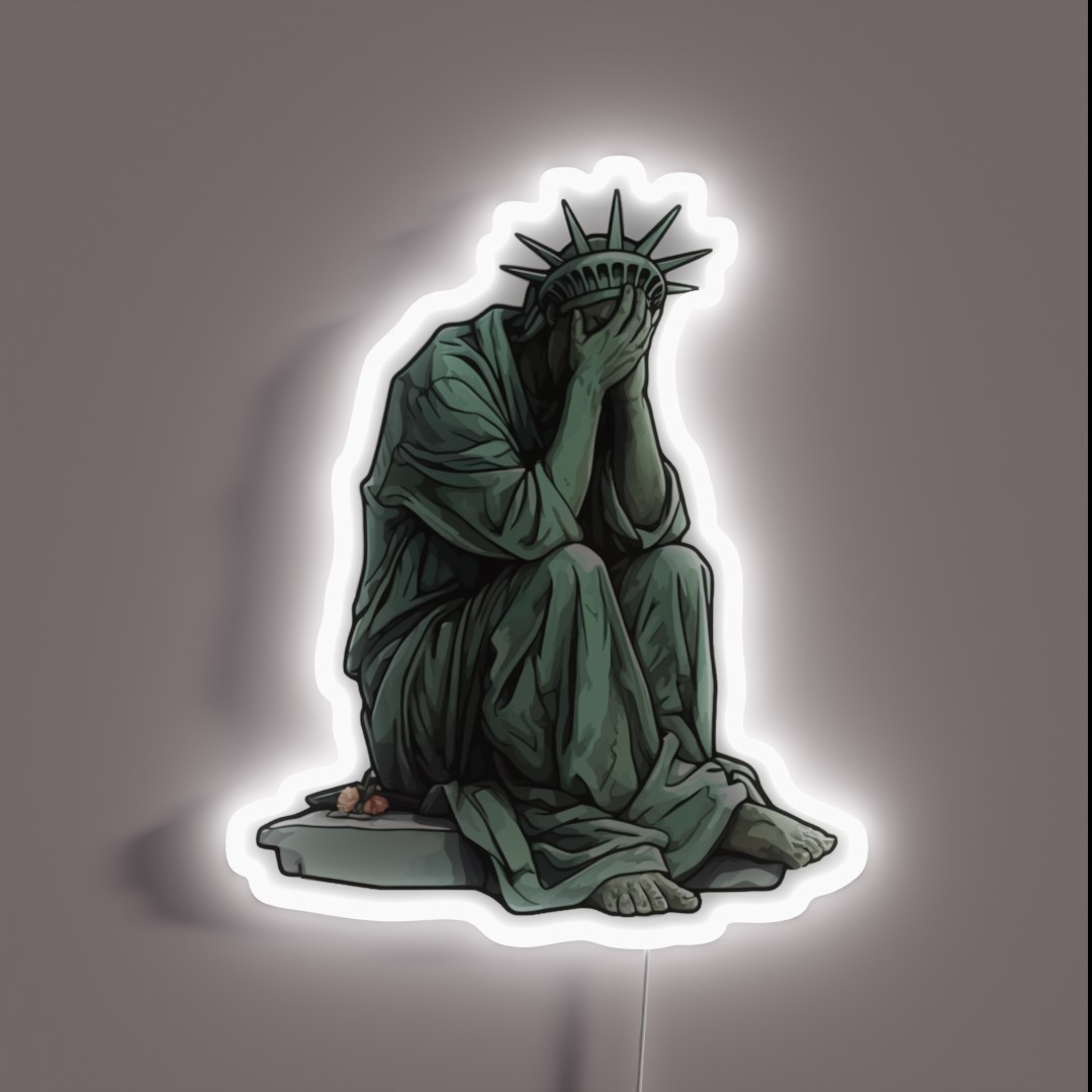 Featuring the iconic Statue of Liberty in tears, this sign is sure to spark conversation and debate. The low voltage design (12V adapter included) ensures safe and worry-free use, making it ideal for homes with children or pets.