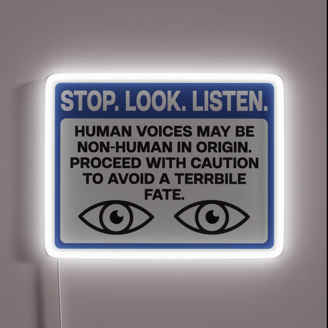STOP LOOK LISTEN Scary Warning Sign RGB Neon Sign