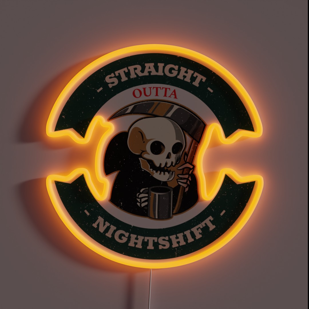 Don’t miss out on this unique opportunity to showcase your passion for the Night Shift series. Order your Straight Outta Night Shift Grim Reaper RGB Neon Sign today and add a touch of dark humor to your space!