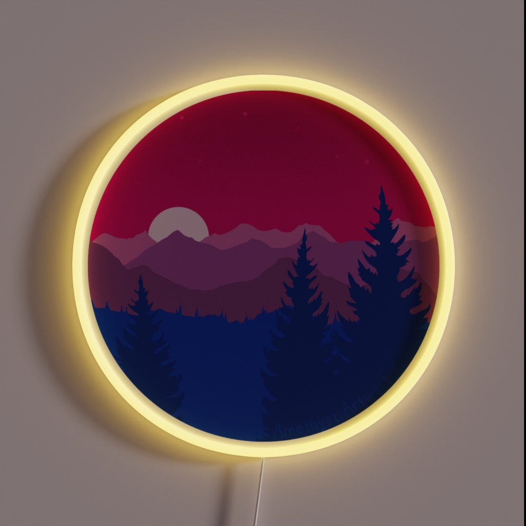Add a touch of pride to your space with our vibrant, customizable RGB neon sign featuring a serene mountainscape with a subtle bisexual pride flag design.