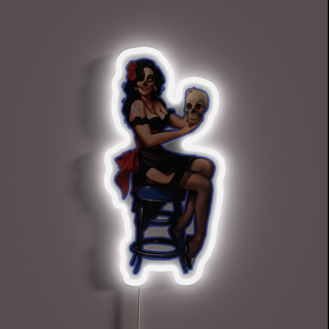 **Sugar Skull Retro Pinup RGB Neon Sign**