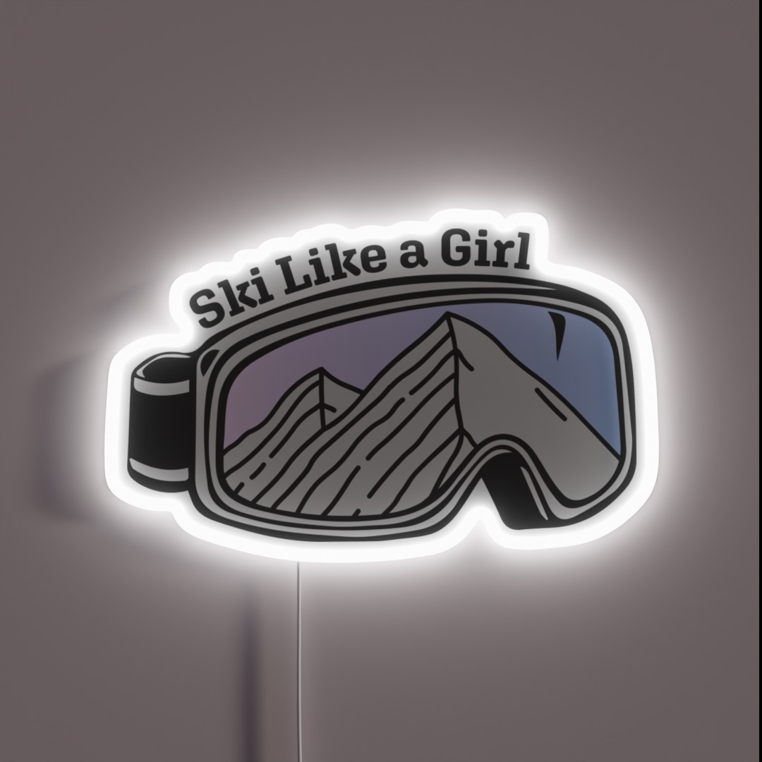 Shine bright on the slopes with our Sunset Mountain Ski Goggles inspired RGB neon sign, perfect for empowering female skiers to ‘Ski Like A Girl’ and make a statement in any mountain lodge or home decor.