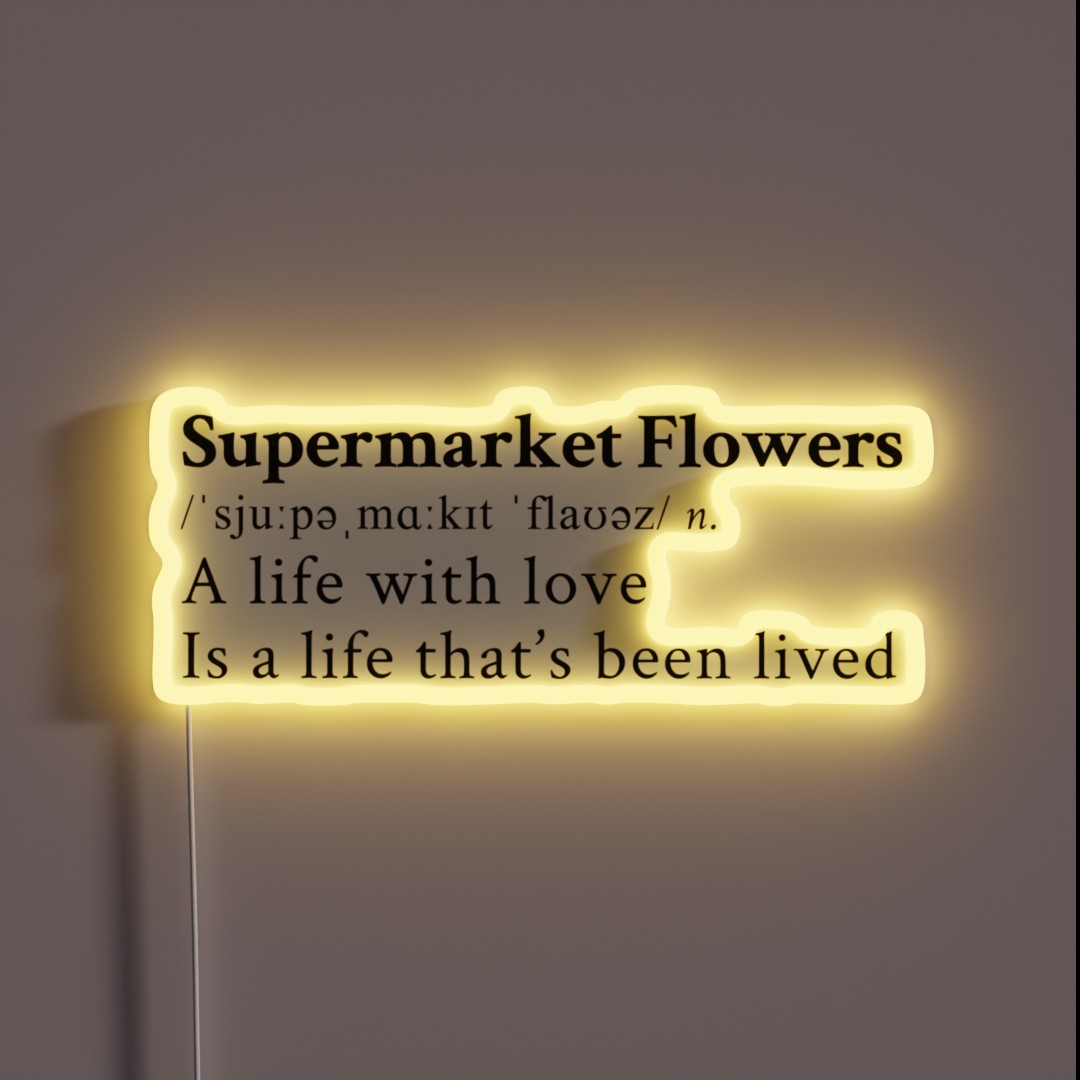 Add a pop of color and personality to your space with our vibrant Supermarket Flowers RGB neon sign, perfect for any fan of retro aesthetics.