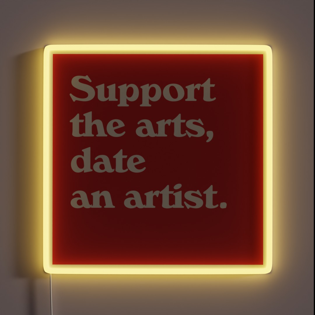 Illuminate your space with our unique ‘Support the Arts Date an Artist’ RGB neon sign, a perfect blend of art and love to add a touch of creativity to any room.