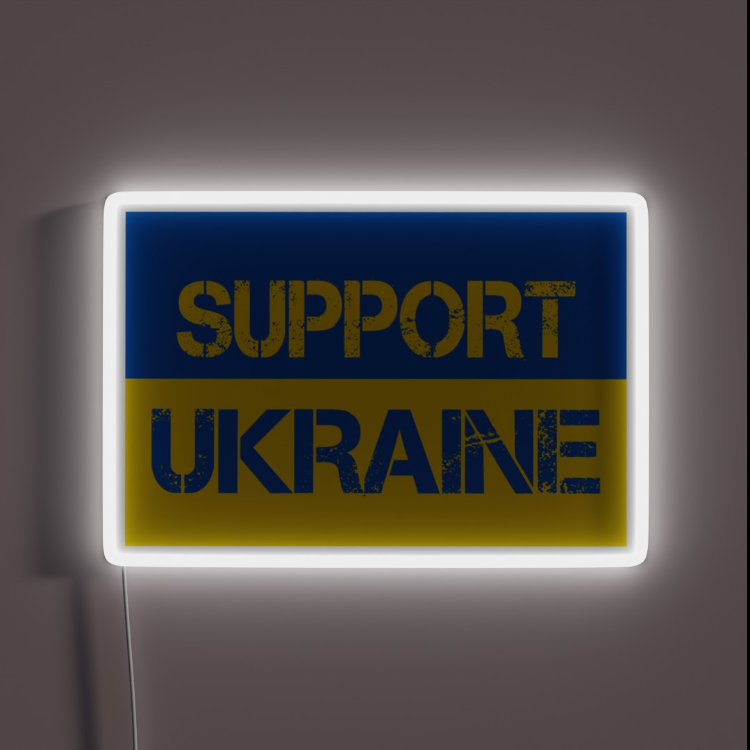 Show your solidarity with this vibrant RGB neon sign featuring the Ukrainian flag, perfect for home decor or as a statement piece.