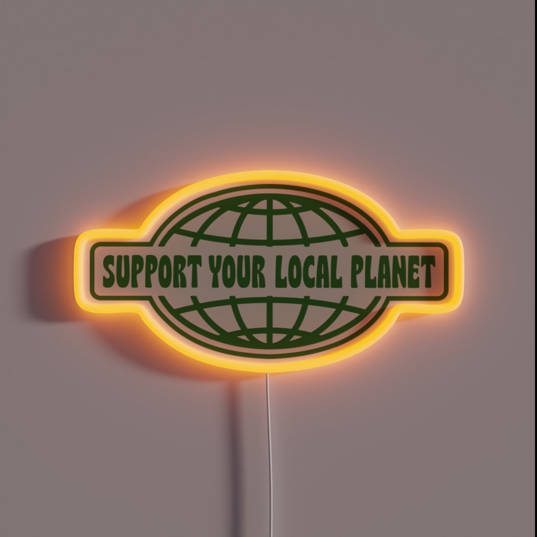 Showcase your eco-warrior spirit with our unique ‘SUPPORT YOUR LOCAL PLANET’ RGB neon sign, perfect for home decor or office ambiance.