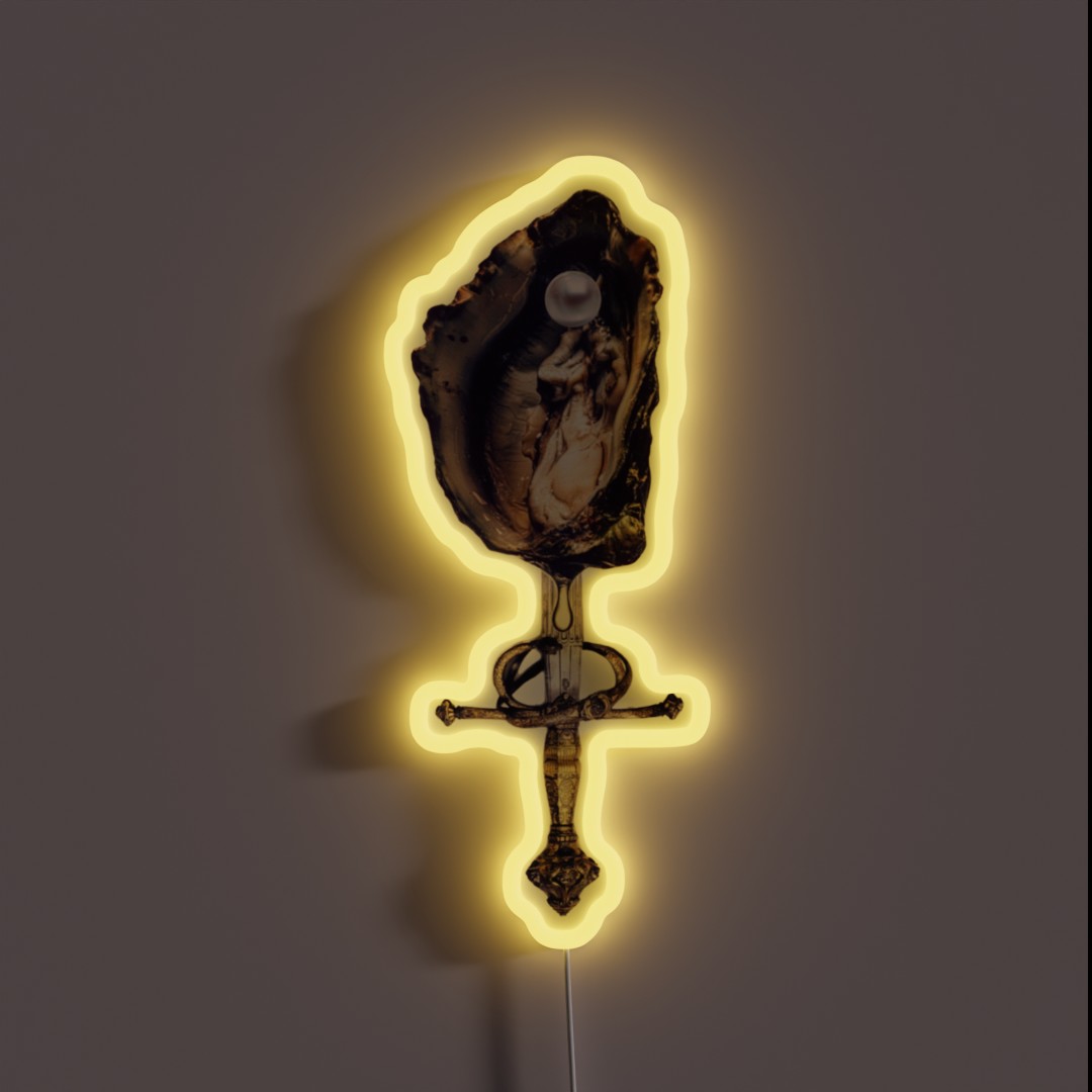 Add a touch of modern elegance to your space with this unique Sword Oyster RGB neon sign, featuring vibrant color-changing lights and sleek design.