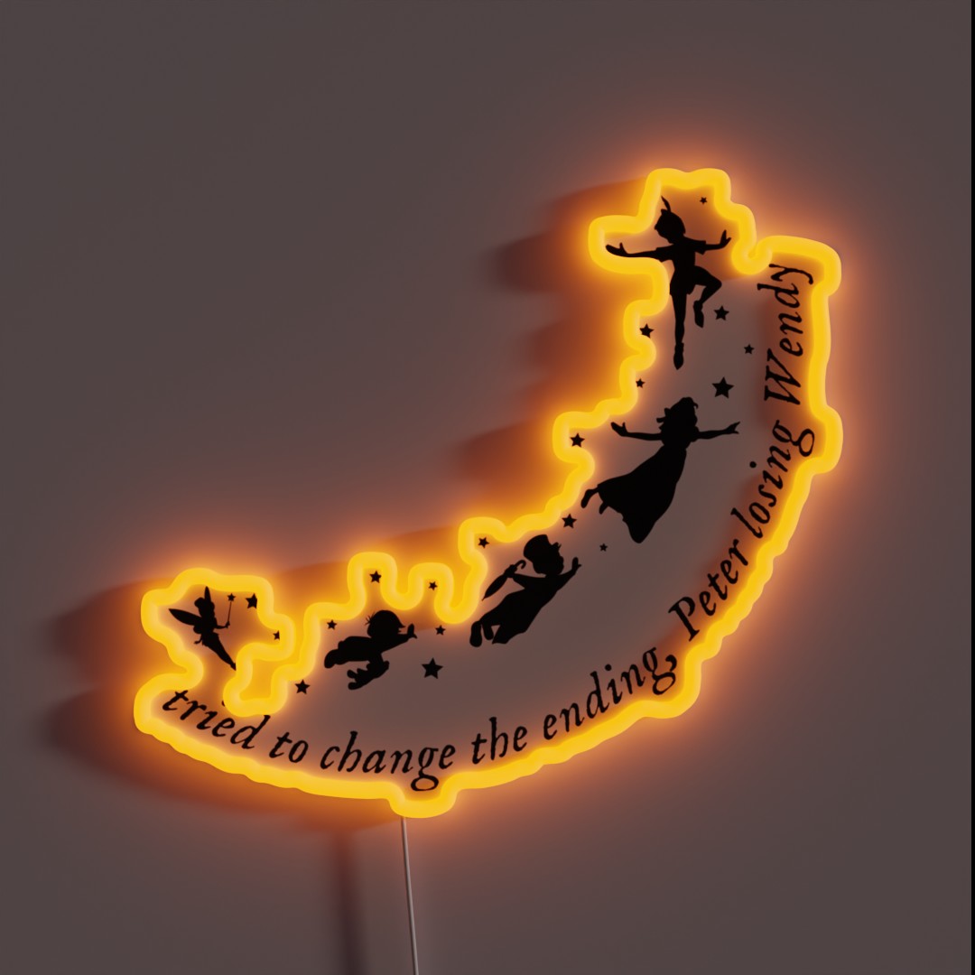 Illuminate your space with this unique Taylor Swift Cardigan Peter Pan inspired neon sign, featuring vibrant RGB colors that bring the whimsical magic of Neverland to life.
