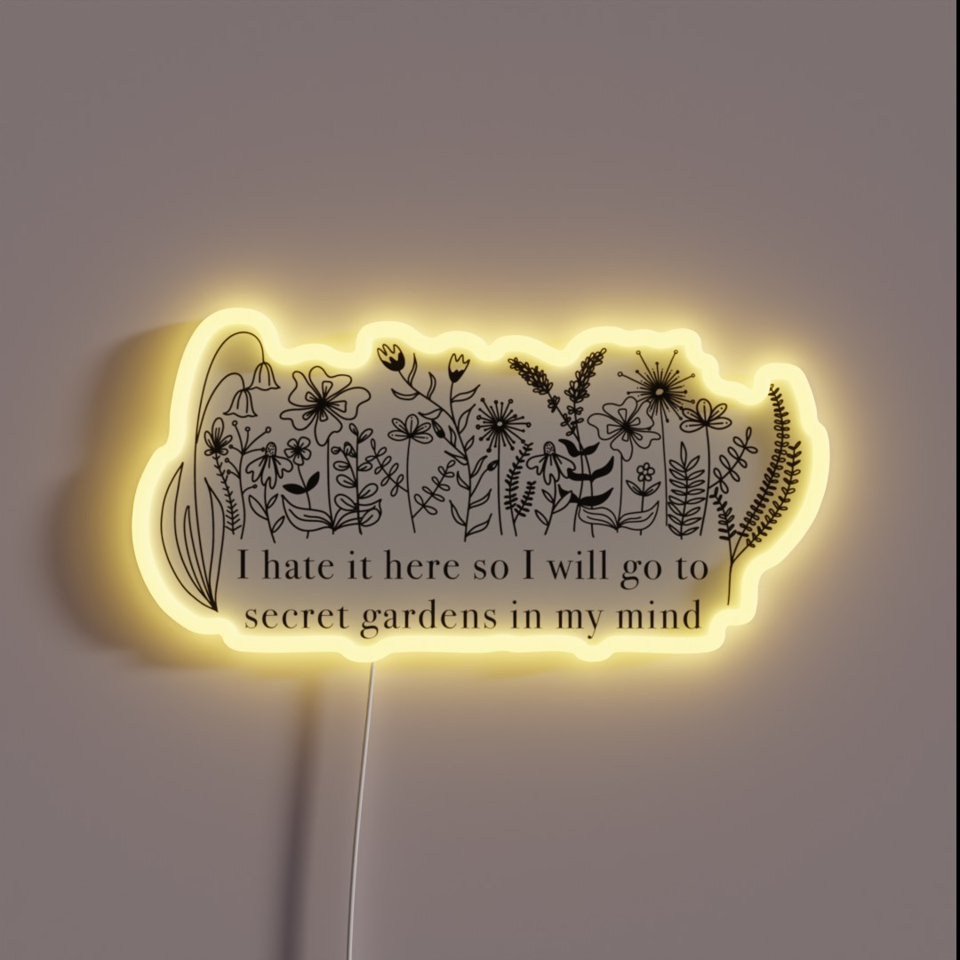 Introducing the Taylor Swift TTPD I Hate It Here Garden Aesthetic RGB Neon Sign, a vibrant and eye-catching addition to any room or outdoor space. This unique sign is designed for fans of the song and style of Taylor Swift, featuring a colorful and playful aesthetic.