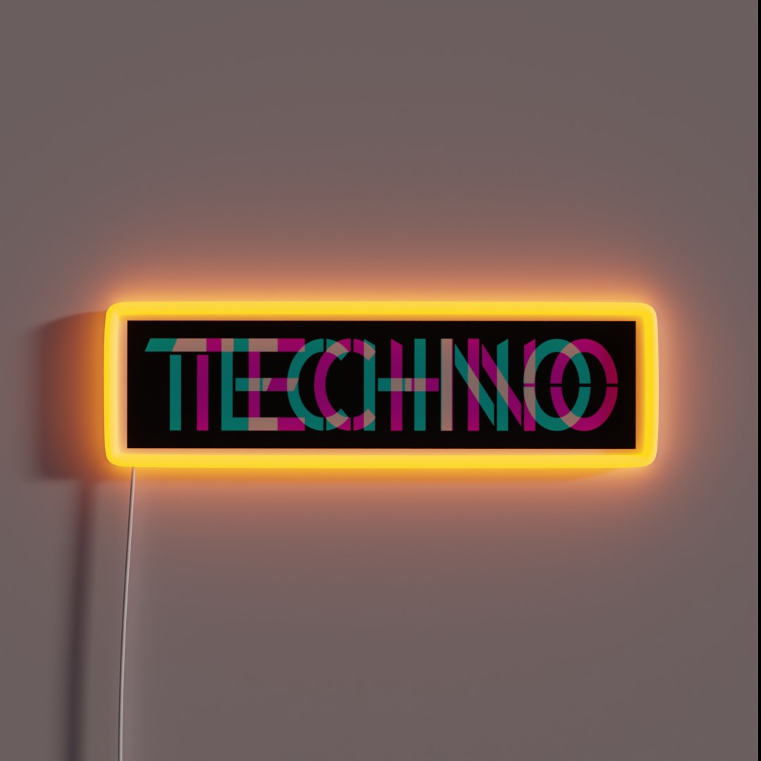 Vibrant Techno Techno Music 3D Look RGB Neon Sign – Add a futuristic touch to your home or studio with this high-quality, eye-catching neon display featuring a mesmerizing 3D design and colorful RGB illumination.