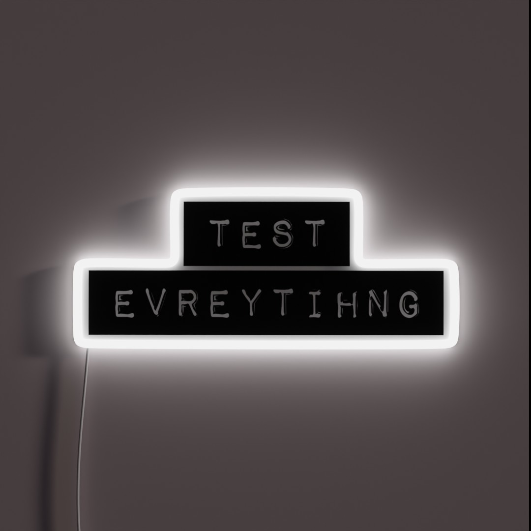 Add a pop of color and personality to your space with our vibrant test everything RGB neon sign. Made with durable materials and designed with eye-catching graphics, this unique lighting solution is perfect for gaming rooms, offices, or any space where you want to make a statement.