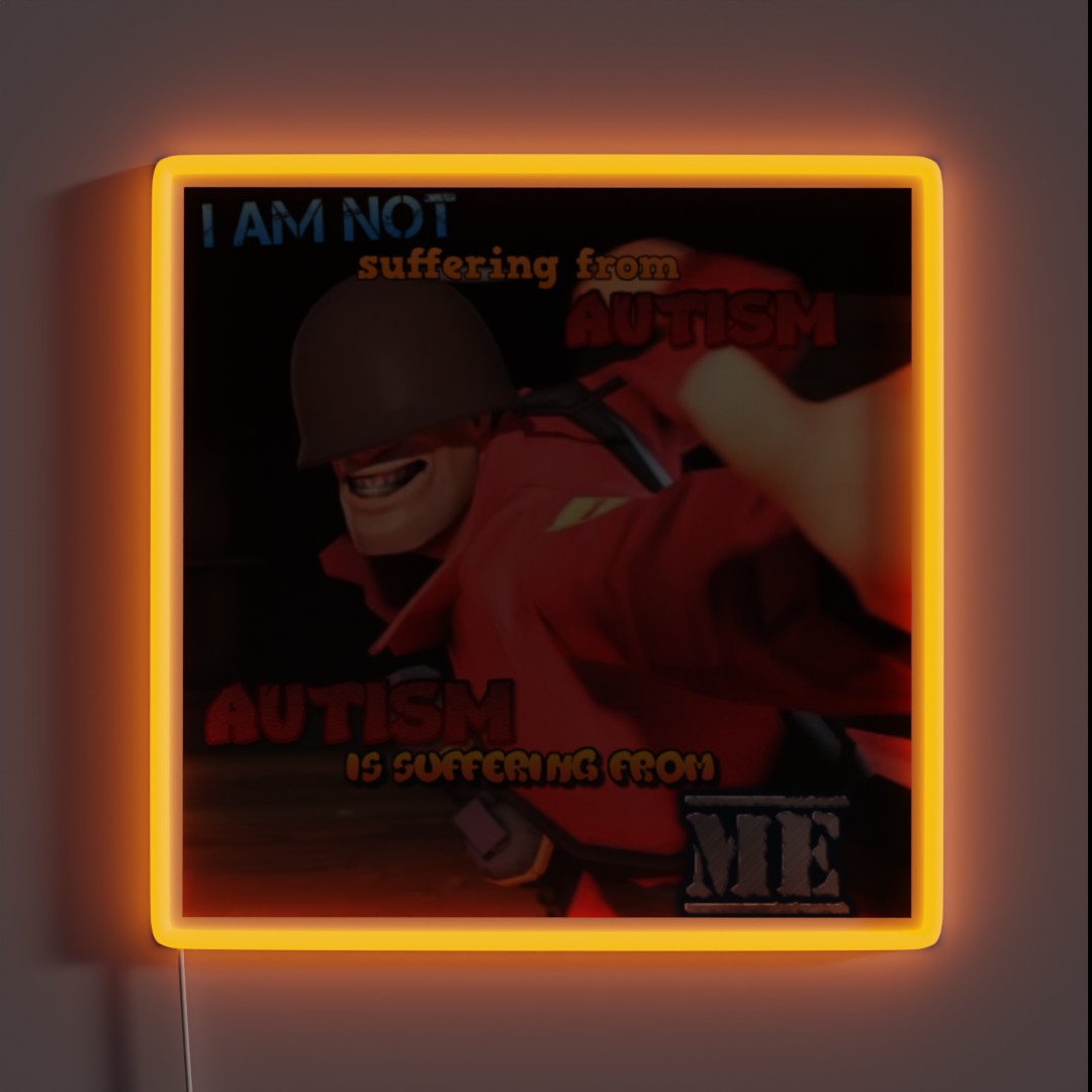 Officially licensed The Fighting Two Autism Soldier RGB neon sign, bringing a touch of Team Fortress 2’s quirky humor and vibrant color scheme to your gaming space or office decor.