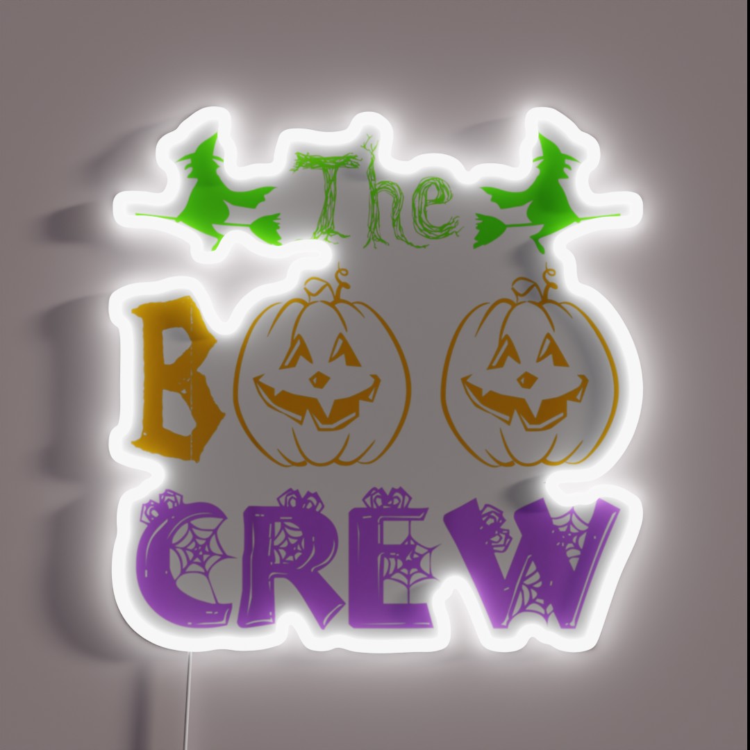 Introducing The Boo Crew Halloween Men Women Funny Friends Girls Boys RGB Neon Sign! Get ready to add some spooky fun to your home or party with this eye-catching and playful sign.