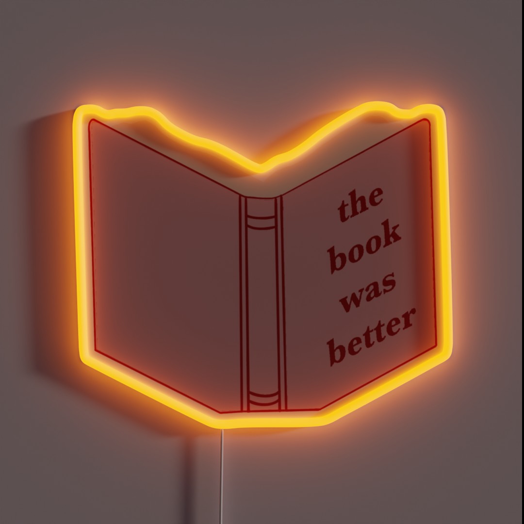 Elevate your space with ‘The Book Was Better’ nostalgia – an RGB neon sign that shines brightly, reminding you of the classic phrase from a bygone era.