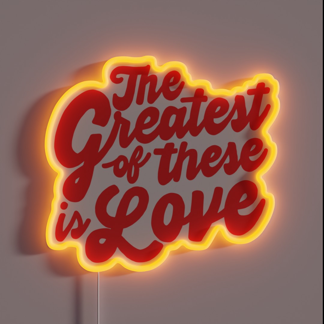 Add a touch of radiant love to any space with our The Greatest Of These Is Love RGB Neon Sign, expertly crafted with vibrant colors and a sleek design.