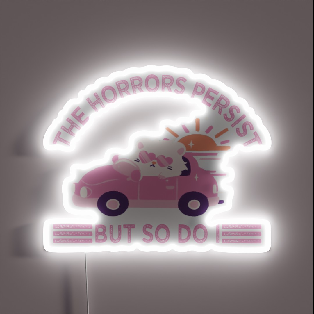 A vibrant and unyielding symbol of resilience, “The Horrors Persist But So Do I” RGB neon sign is a powerful reminder that even in the face of darkness, hope can prevail. Crafted with high-quality LED technology, this sign boasts durability and shatter-resistance, unlike traditional glass signs.