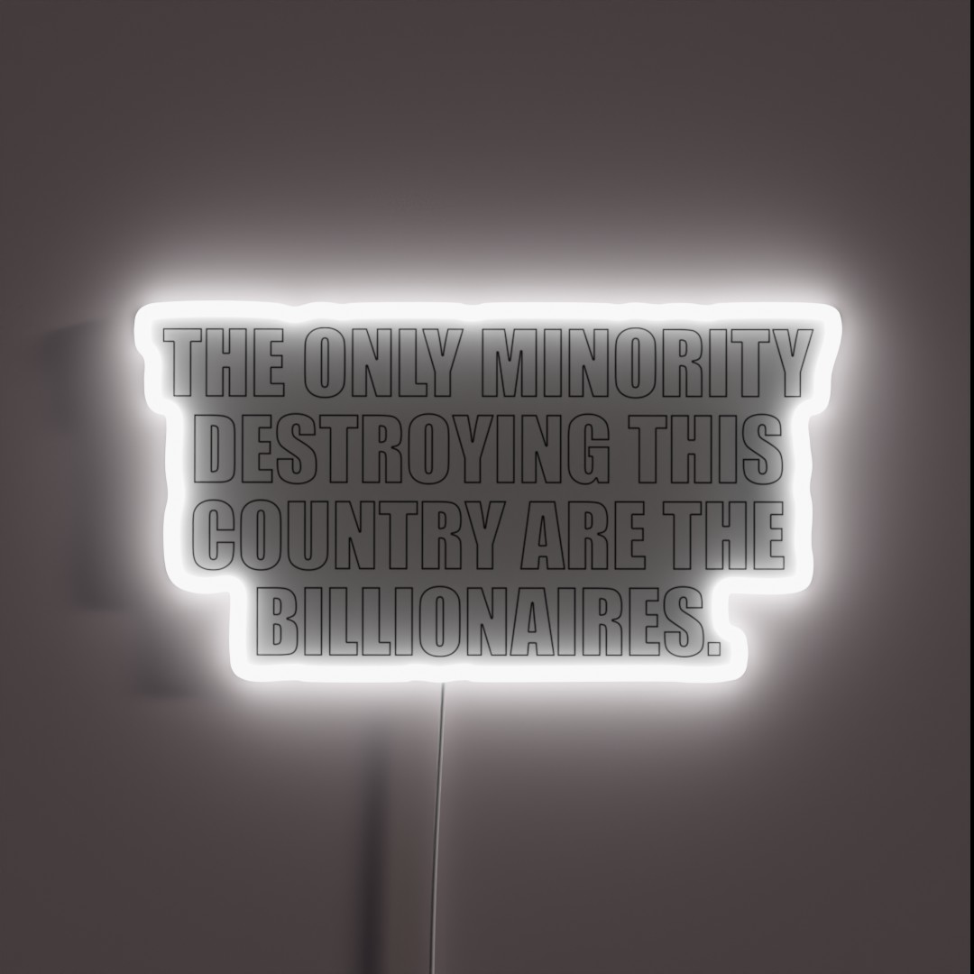Order your statement piece today and join the ranks of those who refuse to be silenced. The Only Minority Destroying this Country are the Billionaires RGB Neon Sign โ it’s not just a product, it’s a movement.