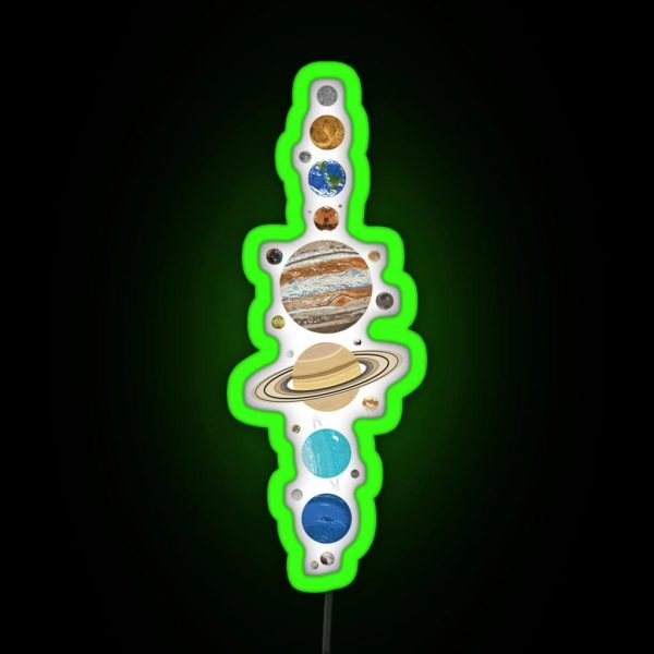 The Solar System With Moons RGB Neon Sign is a stunning decorative piece that brings the beauty of our celestial neighborhood to your home or office. This unique sign features vibrant colors and intricate details, showcasing the planets, sun, and their corresponding moons in stunning RGB light.