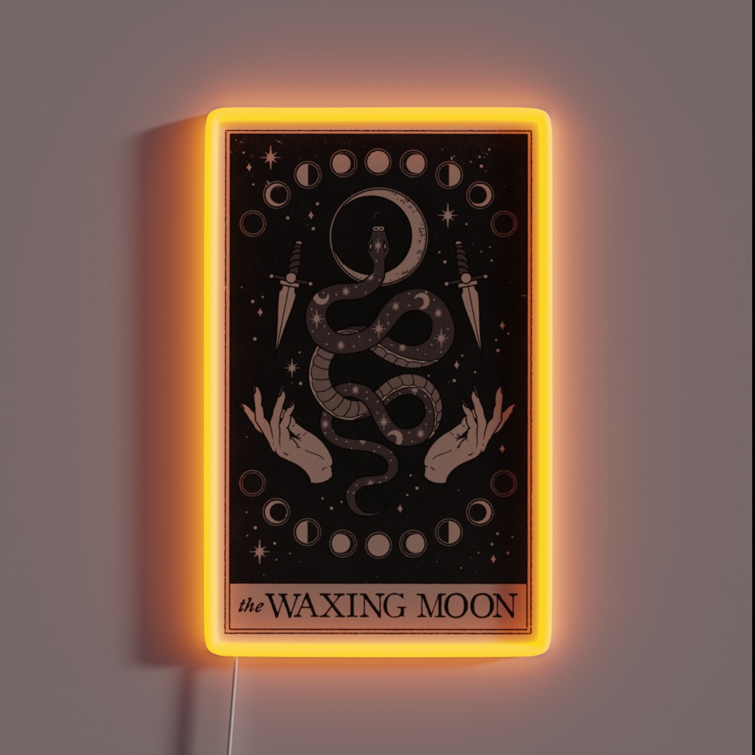 Brighten up your space with the vibrant and stylish Waxing Moon RGB neon sign, featuring colorful, full-spectrum illumination that cycles through a mesmerizing palette of hues to bring a touch of lunar magic to any room.
