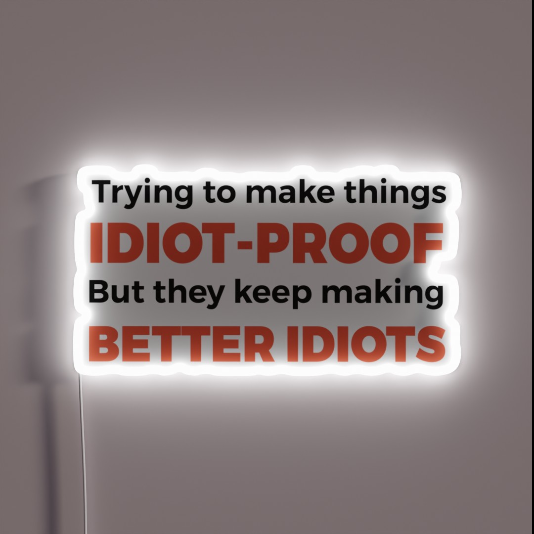 Laugh out loud with this witty ‘They Keep Making Better Idiots’ funny programming joke neon sign, adding a dash of humor to your coding space or office decor.