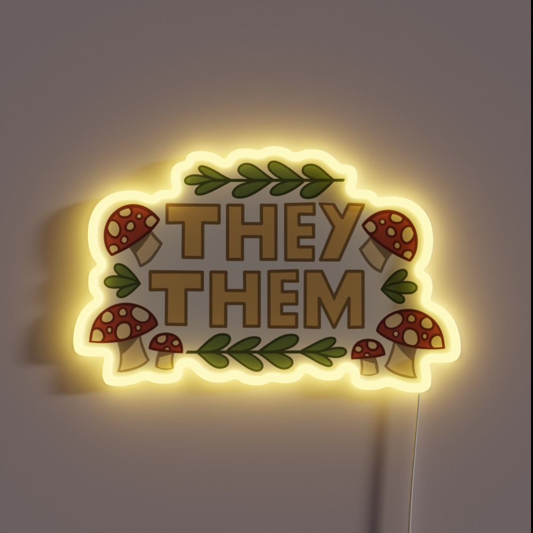 **They Them Mushroom Pronouns RGB Neon Sign**