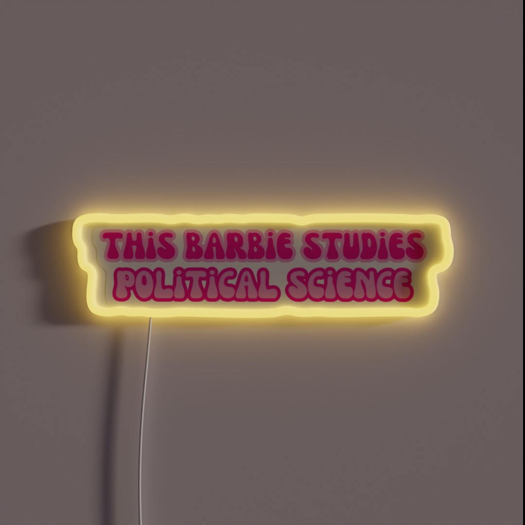 Add a pop of colorful politics to any room with this unique Barbie studies political science RGB neon sign, perfect for fans of feminism and government.
