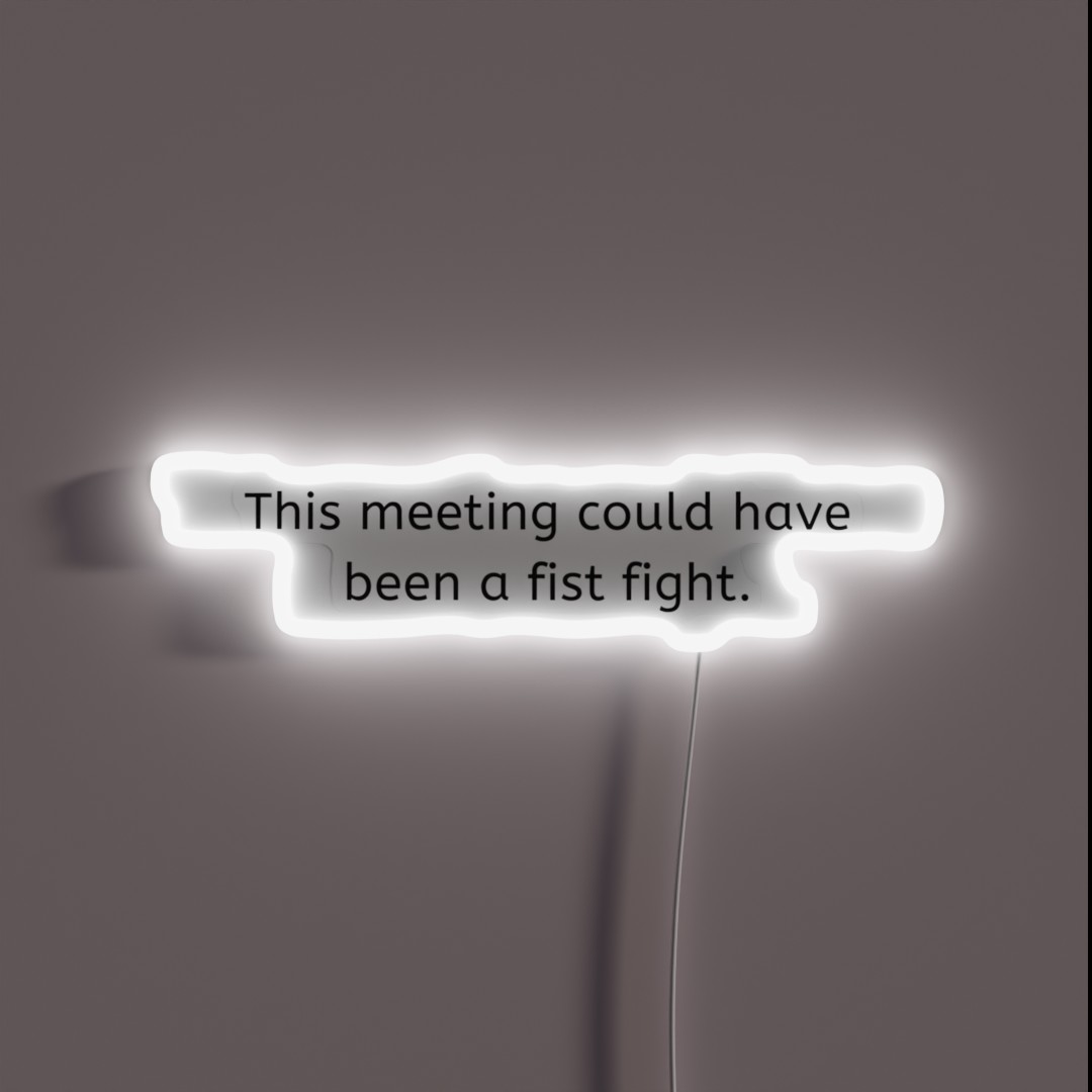 Add a touch of sass to your workspace with our ‘This Meeting Could Have Been a Fist Fight’ RGB Neon Sign, perfect for expressing office frustrations and bringing humor to any room.