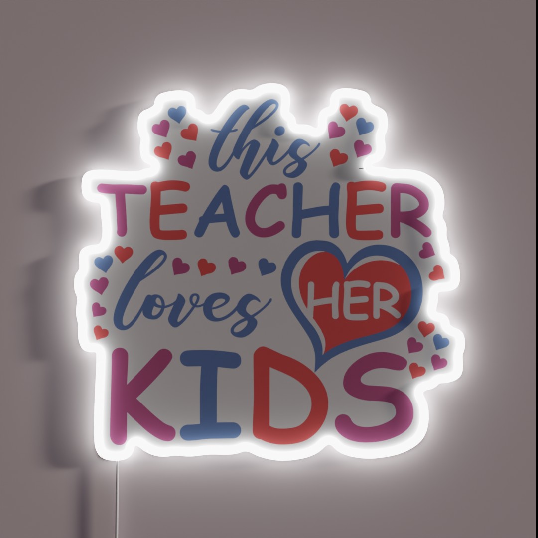 This Teacher Loves Her Kids Valentines Day RGB Neon Sign