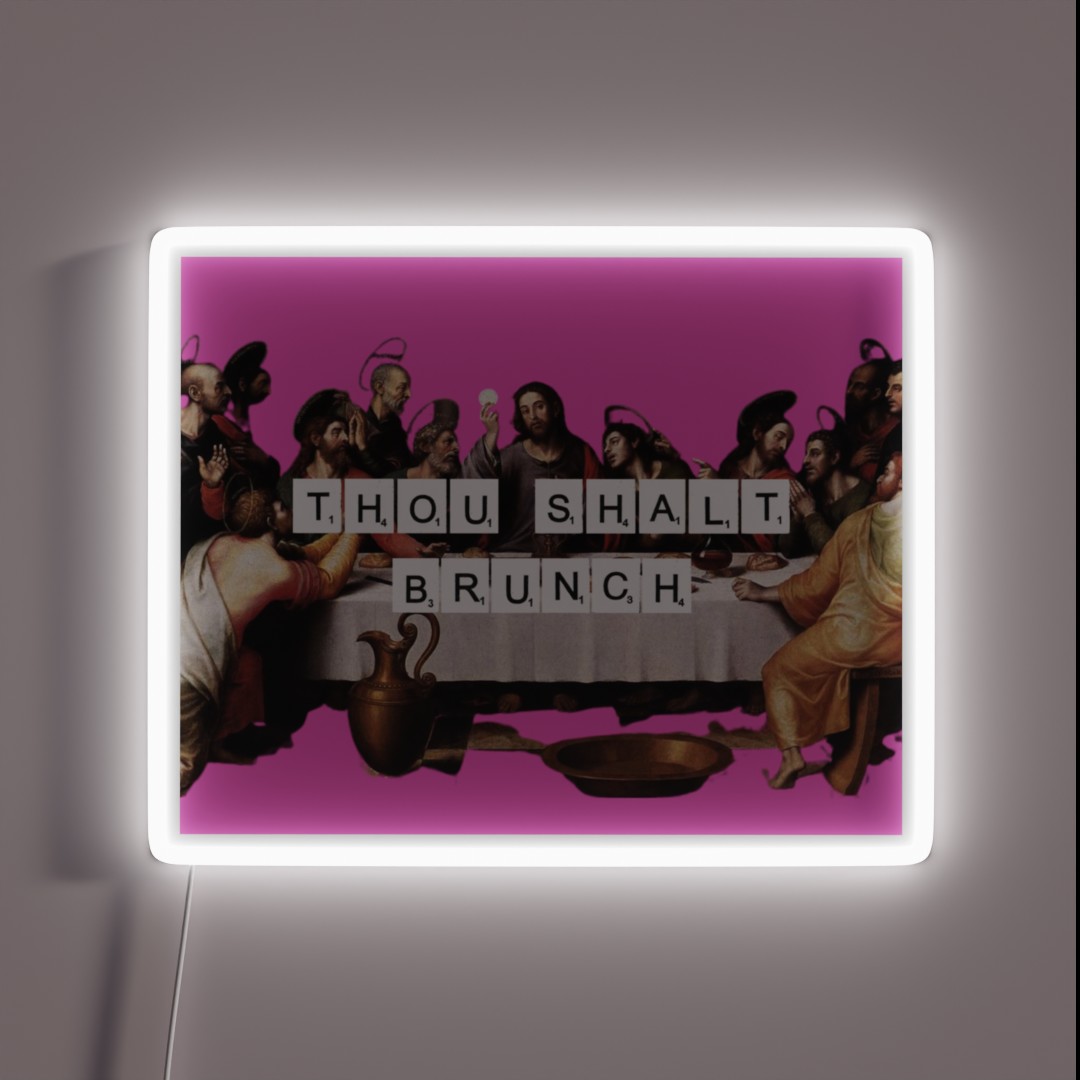 Brighten up your brunch game with the Thou Shalt Brunch RGB neon sign, a vibrant and fun addition to any home or office decor that boldly declares your love of weekend meals.