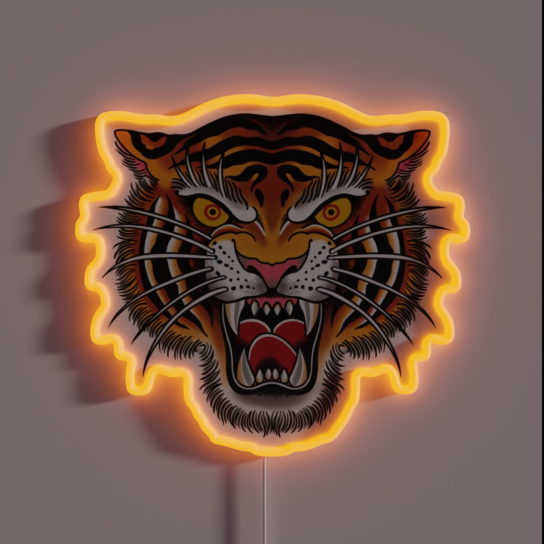 **Tiger Head Tattoo Design RGB Neon Sign**