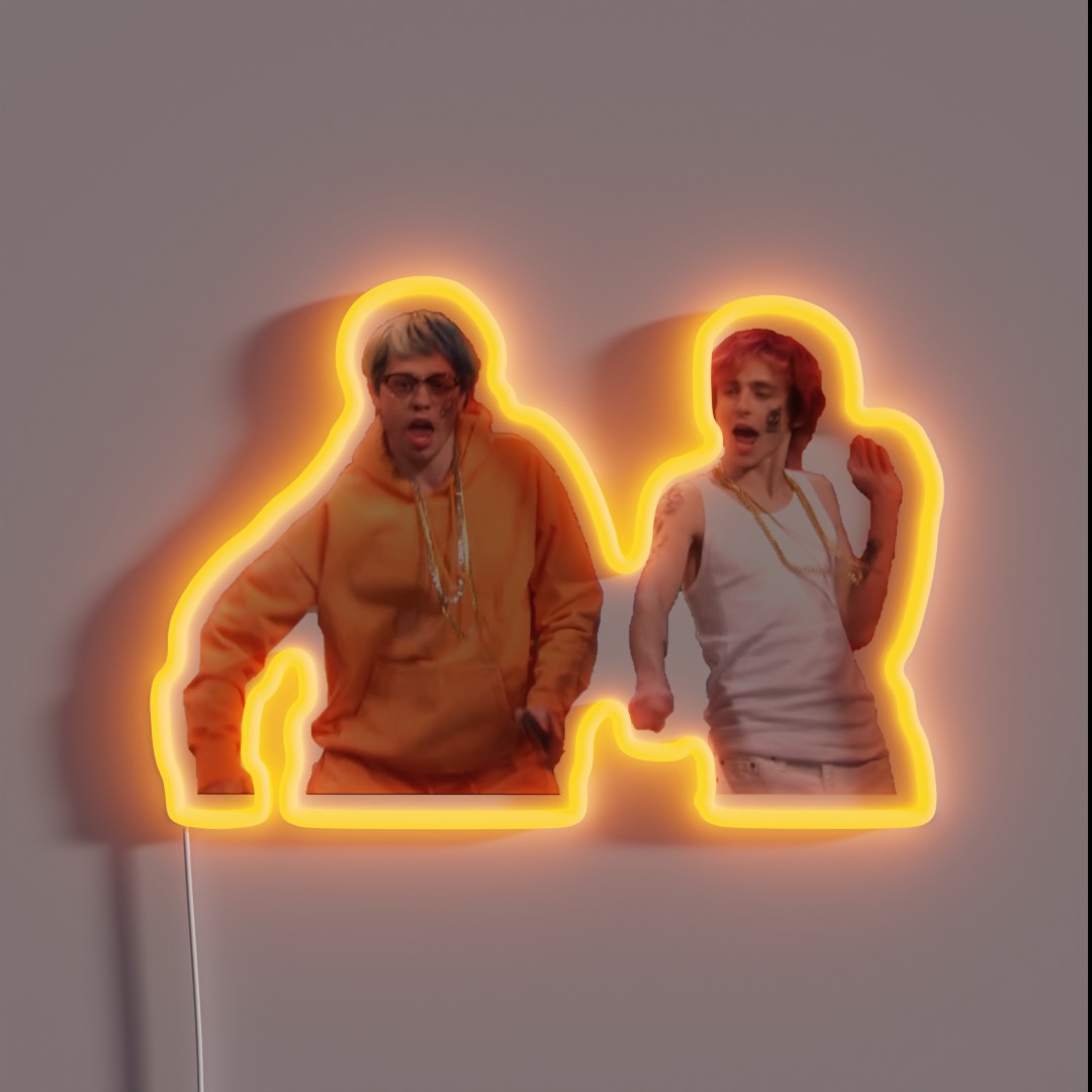 Bring the energy of your favorite celebrities to your space with the Timothee Chalamet Pete Davidson Yeet Yeet Skrt Skrt SNL TikTok Dance RGB Neon Sign! This vibrant and eye-catching sign is not only a statement piece, but also a fun way to show off your personality.