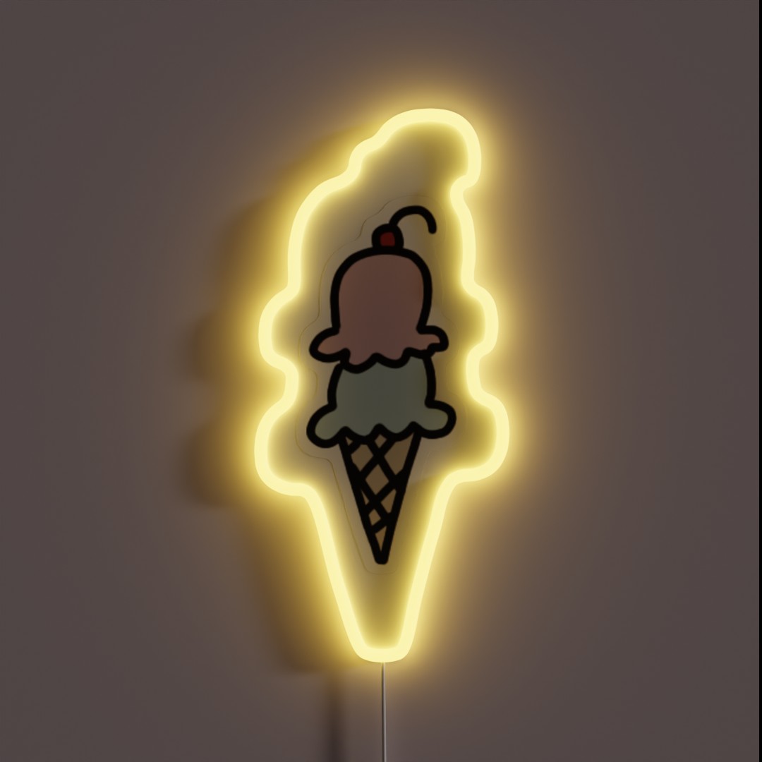 Tiny Simple Ice Cream Drawing Colorful RGB Neon Sign