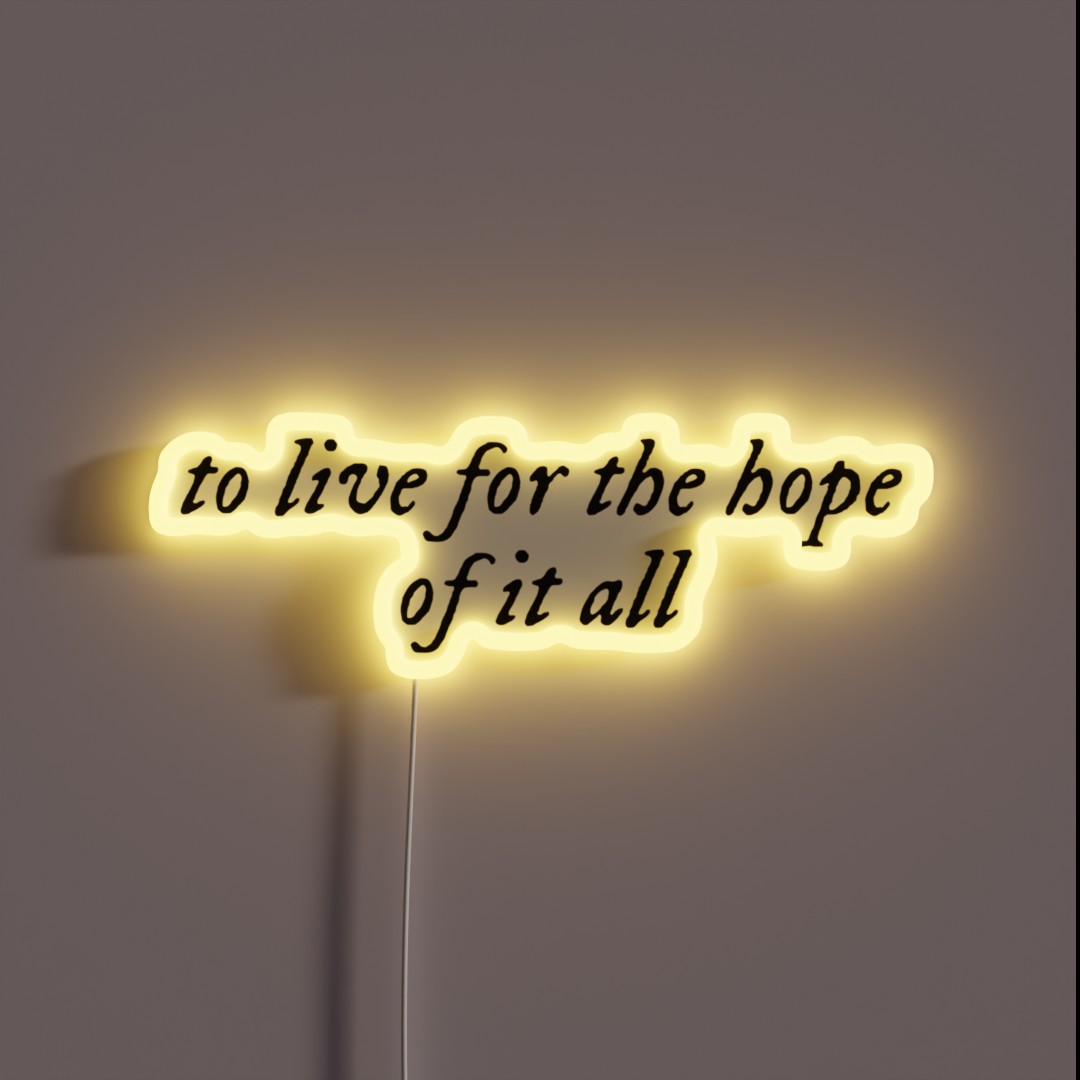Add a touch of inspirational flair to any room with our ‘To Live For The Hope Of It All’ RGB neon sign, featuring a motivational quote that shines bright with colorful LED lights.