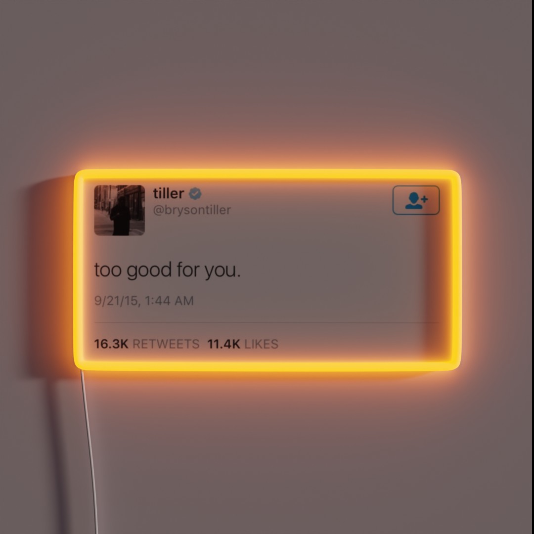 But don’t just take our word for it – the Too Good for You Tweet RGB Neon Sign is built to last. Unlike traditional glass neon signs that can be fragile and prone to breakage, this sign’s LED technology ensures durability and longevity. So go ahead, hang it in your favorite spot, and enjoy its radiant glow for years to come.