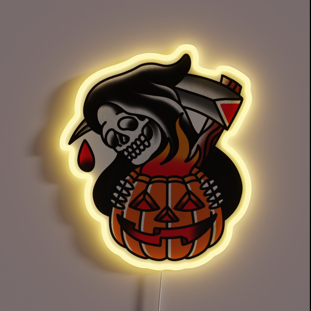 **Traditional Reaper with Pumpking Tattoo Piece RGB Neon Sign**