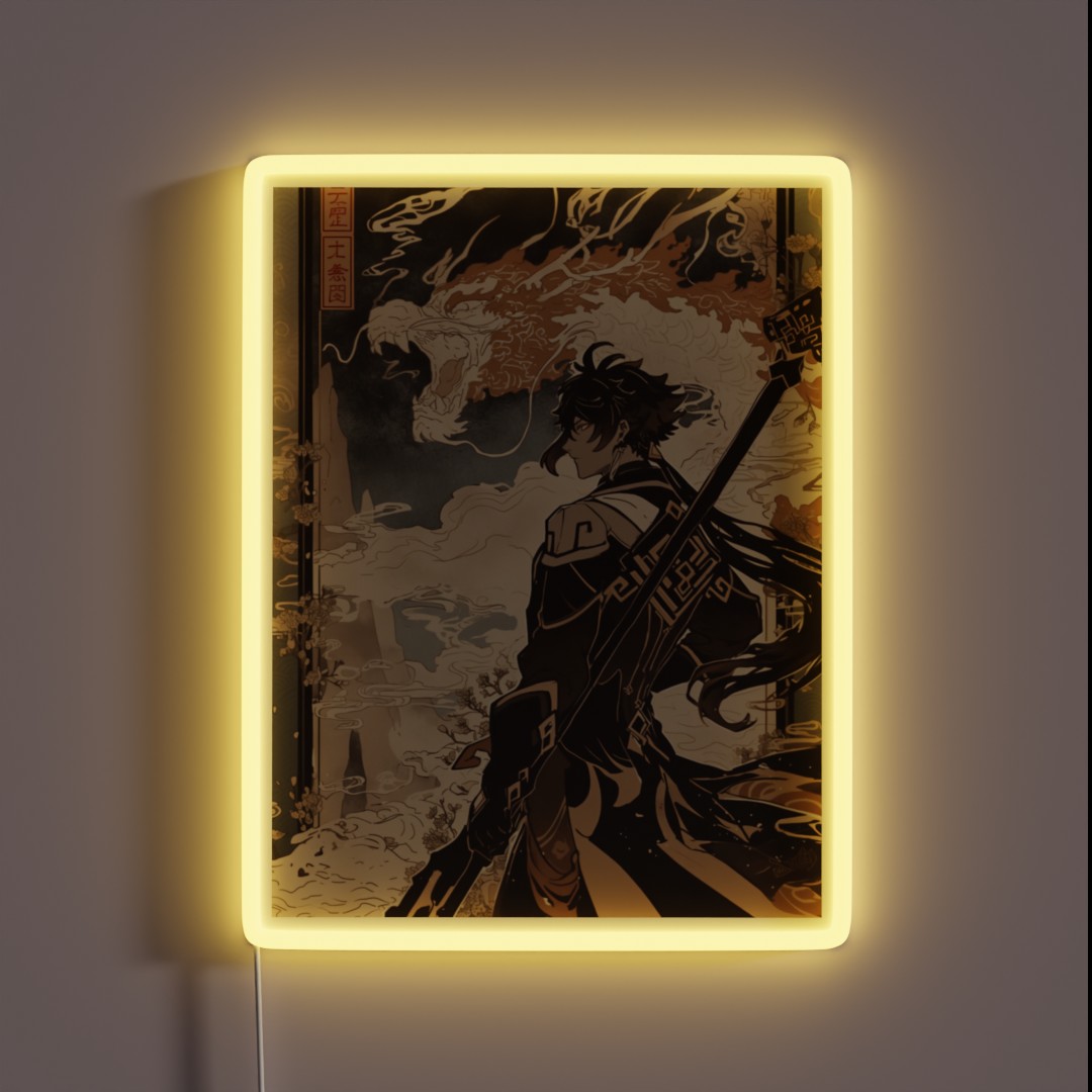Add ancient Chinese charm to any room with this traditional Zhongli RGB neon sign, featuring vibrant colors and timeless design elements.