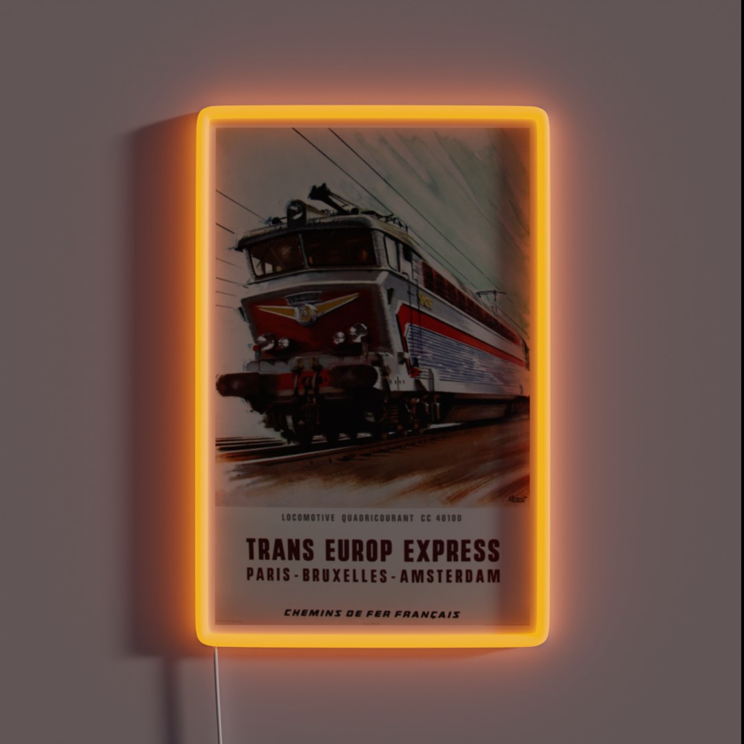 Bring the magic of vintage neon back to life with this stunning Trans Europe Express sign. Order yours today and experience the nostalgia and charm it has to offer!