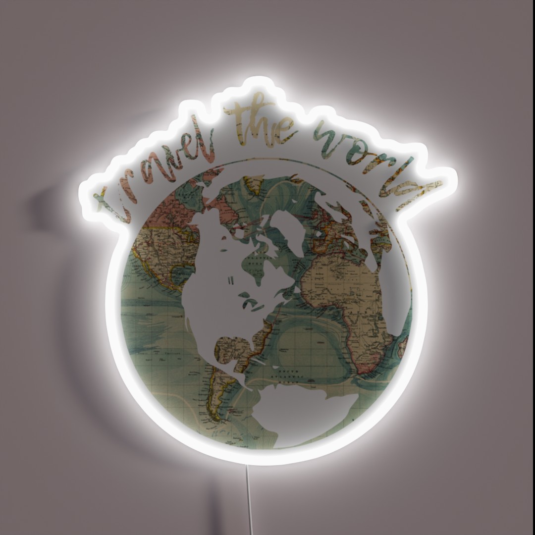 **Illuminate Your Wanderlust with Our Travel the World Map RGB Neon Sign**