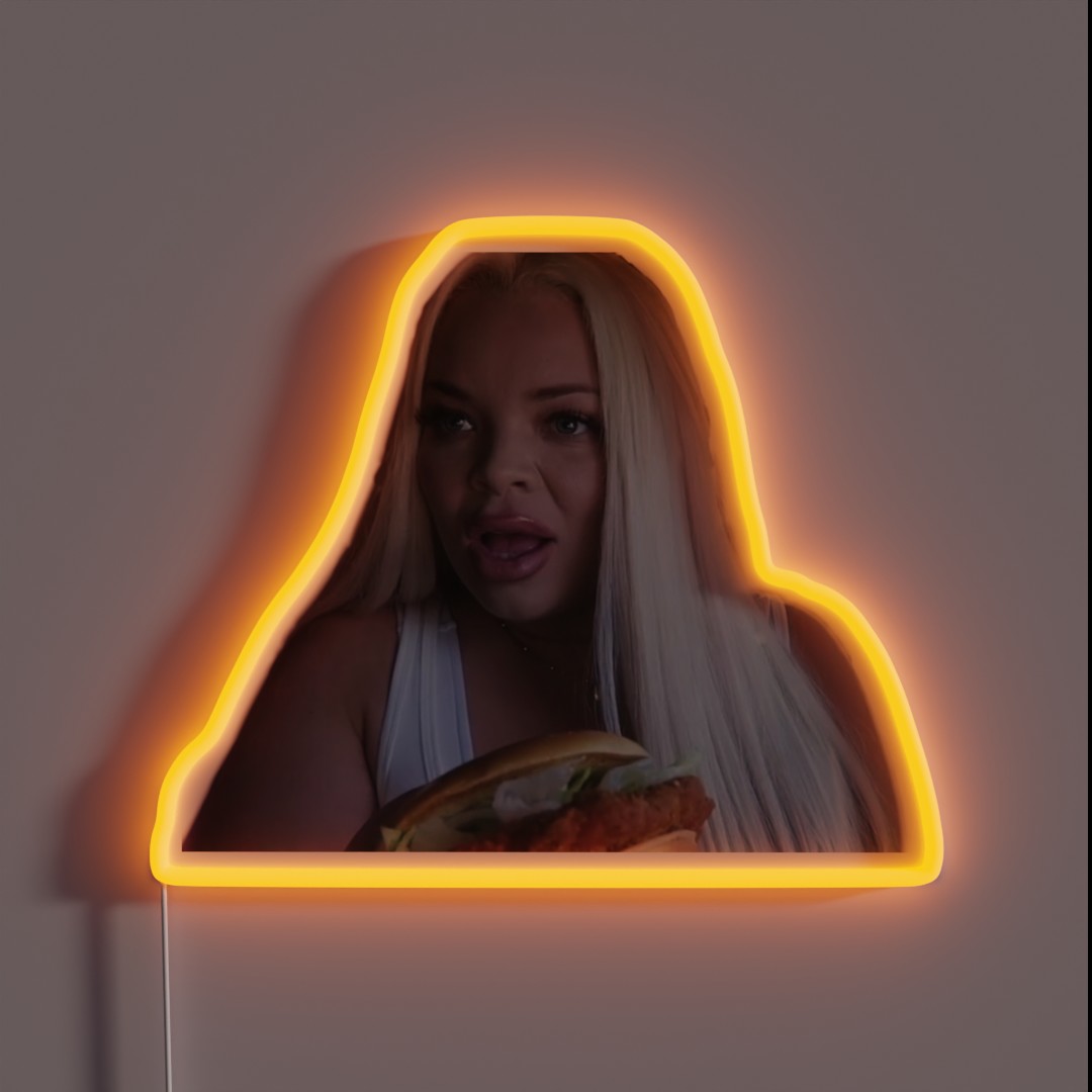 Experience the unique blend of pop culture and retro charm with the Trisha Paytas Huh What RGB Neon Sign. This eye-catching sign features bold, colorful letters that will brighten up any room. The perfect decorative piece for fans of the popular YouTuber, this neon sign is not only visually stunning but also functional.