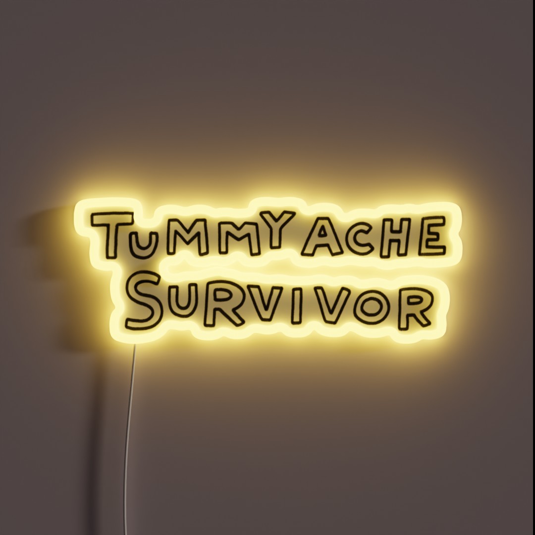 Brighten up your space with our fun and quirky Tummy Ache Survivor Neon Sign, perfect for bedrooms, offices, or any room that needs a dash of personality!