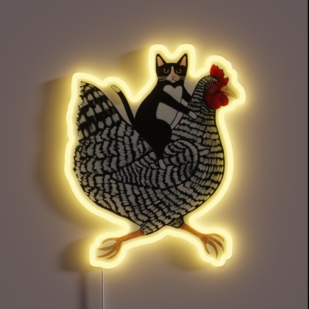 **Add a touch of whimsy to your space with the Tuxedo Cat Chicken Ride RGB Neon Sign!**