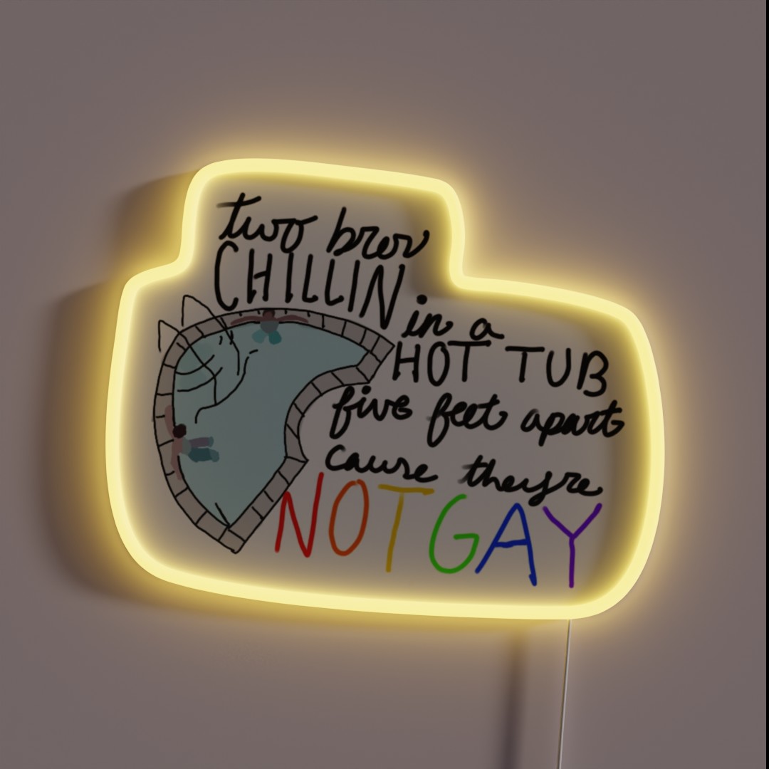 Relax in style with the ‘Two Bros Chillin’ in a Hot Tub’ LED neon sign, a vibrant and fun decor piece featuring a humorous hot tub-themed design with colorful RGB neon lights.