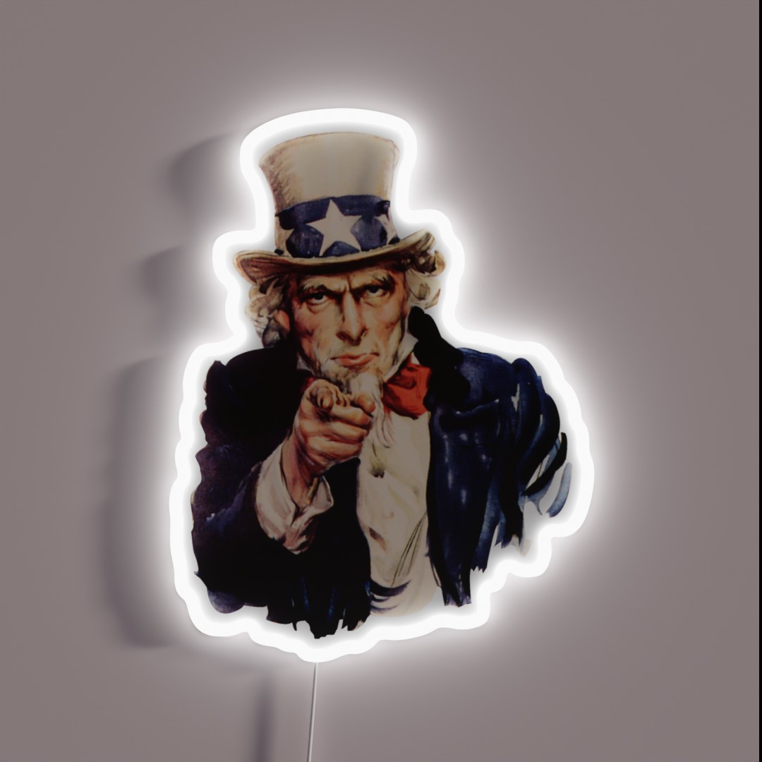 Add a touch of patriotism to your space with this vibrant Uncle Sam RGB neon sign, featuring a classic illustration of Uncle Sam in bold, customizable colors.