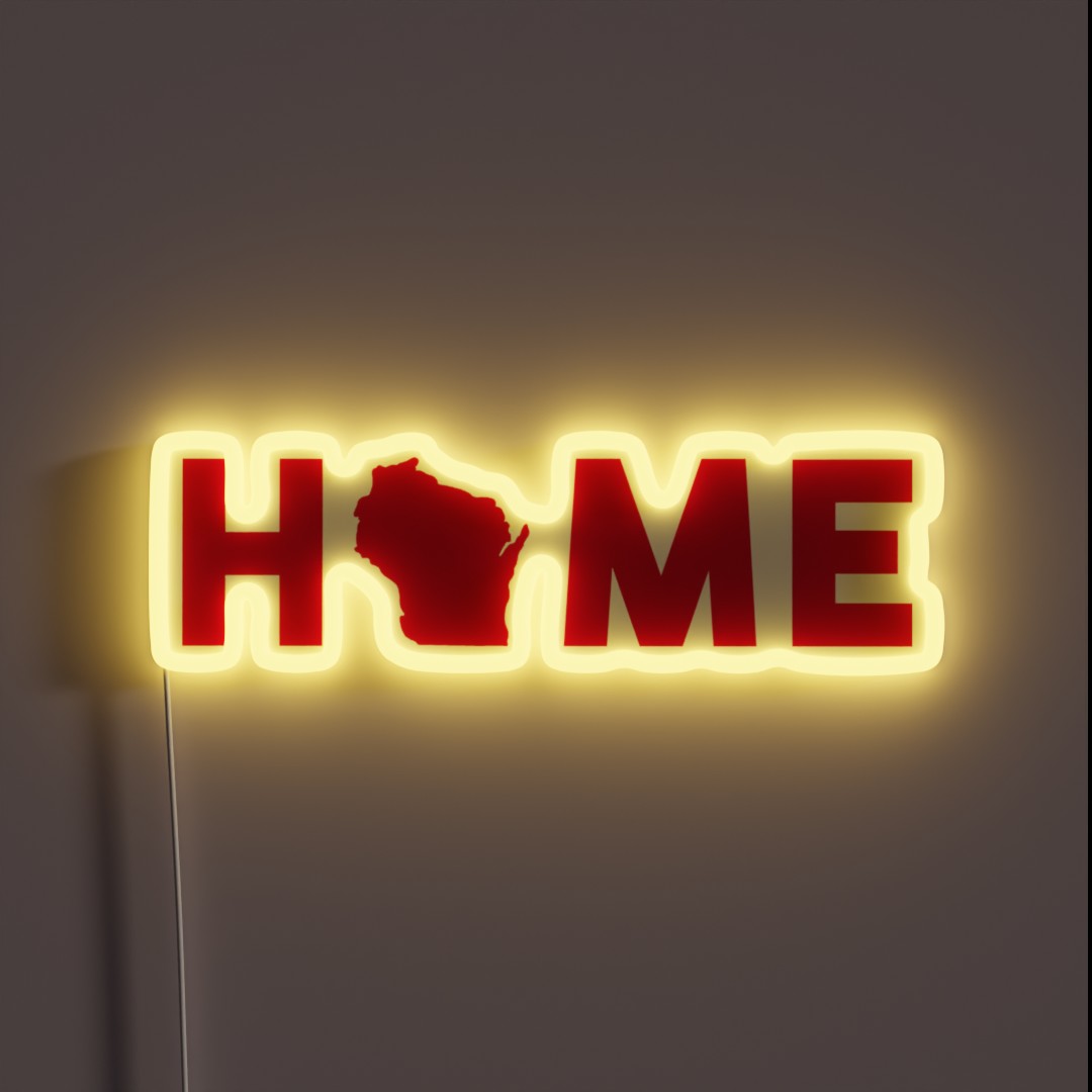 Brighten up your dorm room or home with the official University of Wisconsin Home RGB neon sign, showcasing school spirit and personalized style.