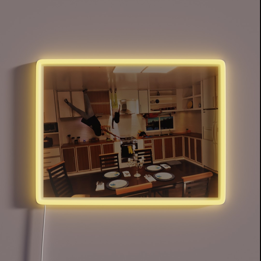 Add a pop of vibrant fun to your kitchen with this unique Upside Down Kitchen and Dining RGB neon sign, featuring colorful LED lights that create a mesmerizing visual effect.